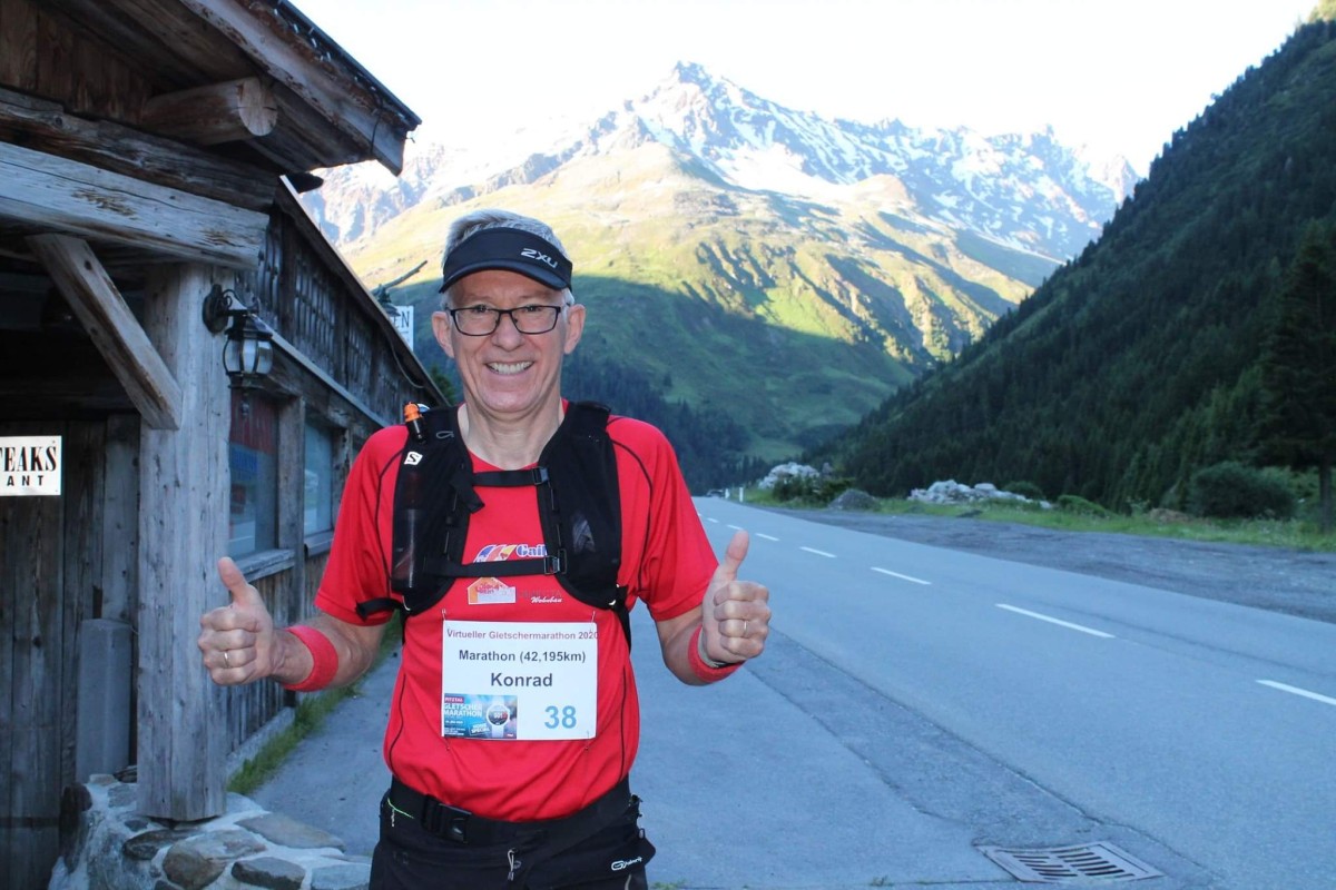 Unser Vereinskollege war heuer zum 6. Mal am Start. Diesmal war alles aber etwas anders als sonst. Der Veranstalter wollte bis zuletzt den Marathon wie gewohnt durchziehen, musste aber dann doch die offizielle Veranstaltung absagen. Begründung war nachvollziehbar und der aktuellen Pandemiesituation geschuldet. In der Vergangenheit kamen immer Starter aus 20 Ländern, und es war bis zur Absage nicht klar, ob alle anreisen durften. Die gute Nachricht war, die Läufer in den jeweiligen 20 Heimatländern am 05.Juli starten zu lassen. Gewertet wurde per Screenshot von der Laufuhr, das Startgeld wurde dem Roten Kreuz in Imst spendiert. Startnummer und Name mussten nach dem Lauf gemeldet werden. Am gleichen Tag um 17.00 Uhr gab es auf Facebook die Siegerehrung. Da Konrad Wallner im Pitztal immer Urlaub und Laufen verbindet, lief er die „Original-Marathonstrecke“. Mit ihm waren noch 6 weitere Läufer auf dieser Strecke am Start. Da es sonst 10 Verpflegungsstellen gibt, diesmal aber natürlich keine, musste er mit Trailrucksack von ca. 4 kg, gefüllt mit Wasser, laufen, was er als sehr gewöhnungsbedürftig empfand. Dass es ihm beim Laufen sehr gut ging, spiegelt sich der hervorragenden Zeit von 3.38.12 Stunden und damit dem 2.Platz in der AK M 55 wieder. Konrad freut sich schon auf den 15. Gletschermarathon, hoffentlich wieder unter normalen Bedingungen.