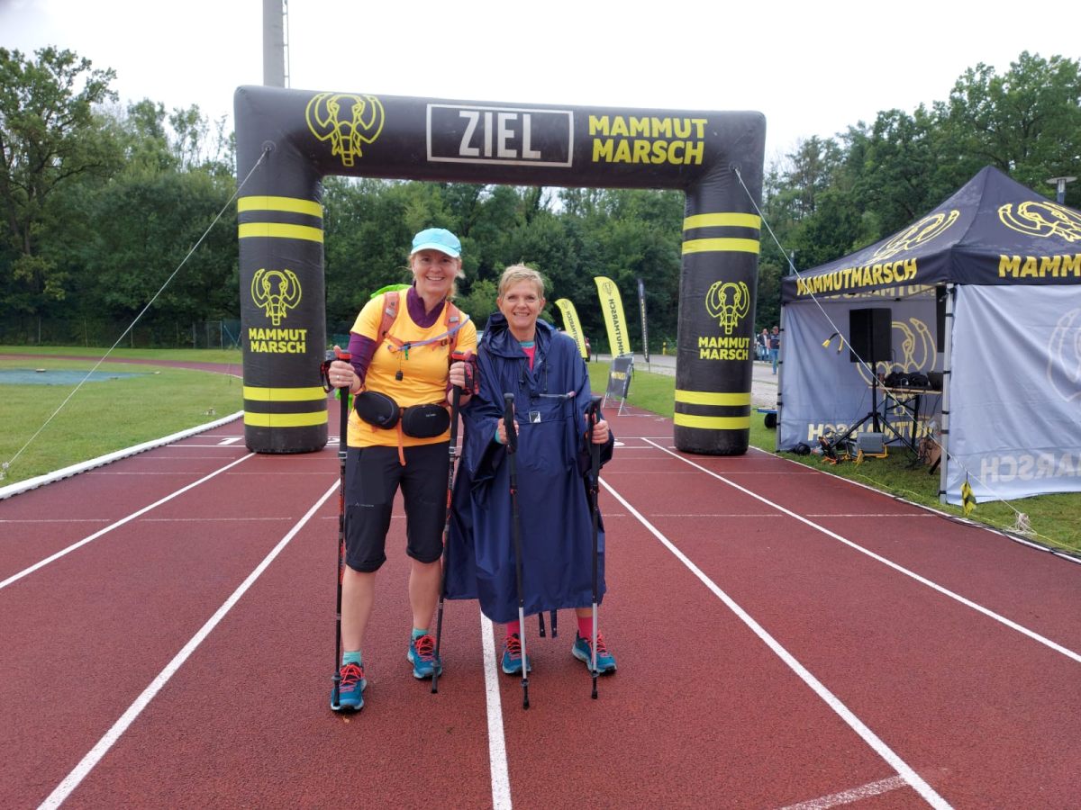 Vor ein paar Monaten für Veronique Mooslechner und Claudia Bockholt noch völlig undenkbar "Die müssen verrückt sein, 100 km an einem Stück und ohne Schlaf!", ging es nach diversen Trainingsmärschen u.a. um Ammer- und Starnberger See, am 30.07.31 um 13 Uhr in Krailling an den Start. Der Weg führte die rund 900 Teilnehmer/innen aus dem Westen Münchens, zum Starnberger See und von dort auf einem Rundkurs an der Isar entlang, durch die Münchner Innenstadt an zahlreichen Sehenswürdigkeiten entlang wieder zum Ausgangspunkt. Verpflegungspunkte gab es rund alle 20 km, an denen die Trinkblasen aufgefüllt und kalorienreiche Nahrung aufgenommen wurden. Die Wettervorhersage versprach nichts Gutes und so hieß es ab ca. km 40 Dauerregen und irgendwann Marschieren in plitschnassen Schuhen. Nach 20:57 Stunden brutto (19:10 Stunden netto) kamen beide Athletinnen glücklich ins Ziel. Die Finisherquote lag bei knapp 52%. Für Veronique war vorher klar, dass wird der Erste und Einzige 100 km Marsch. Es sollte anders kommen: beide sind bereits für Mai 2022 für den Megamarsch von München nach Mittenwald angemeldet.