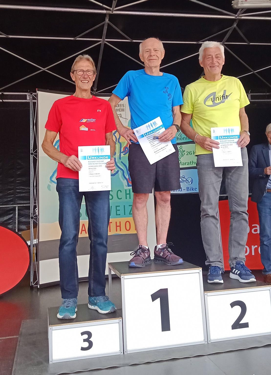 Bei idealem Laufwetter um 9:00 Uhr - 18 Grad, wolkig - starteten beim Halbmarathon ca. 570 Teilnehmer (199 bei der Bayerischen Meisterschaft) zum Kampf um die Medaillen. In einer Zeit von 1:43:31 Stunden konnte dann Gerhard den 3. Platz in in der Altersklasse M70 erlaufen. Am Marktplatz in Ebermannstadt wurden alle Läufer bestens verpflegt und konnten so die Siegerehrung neben einem geselligem Ratsch genießen.