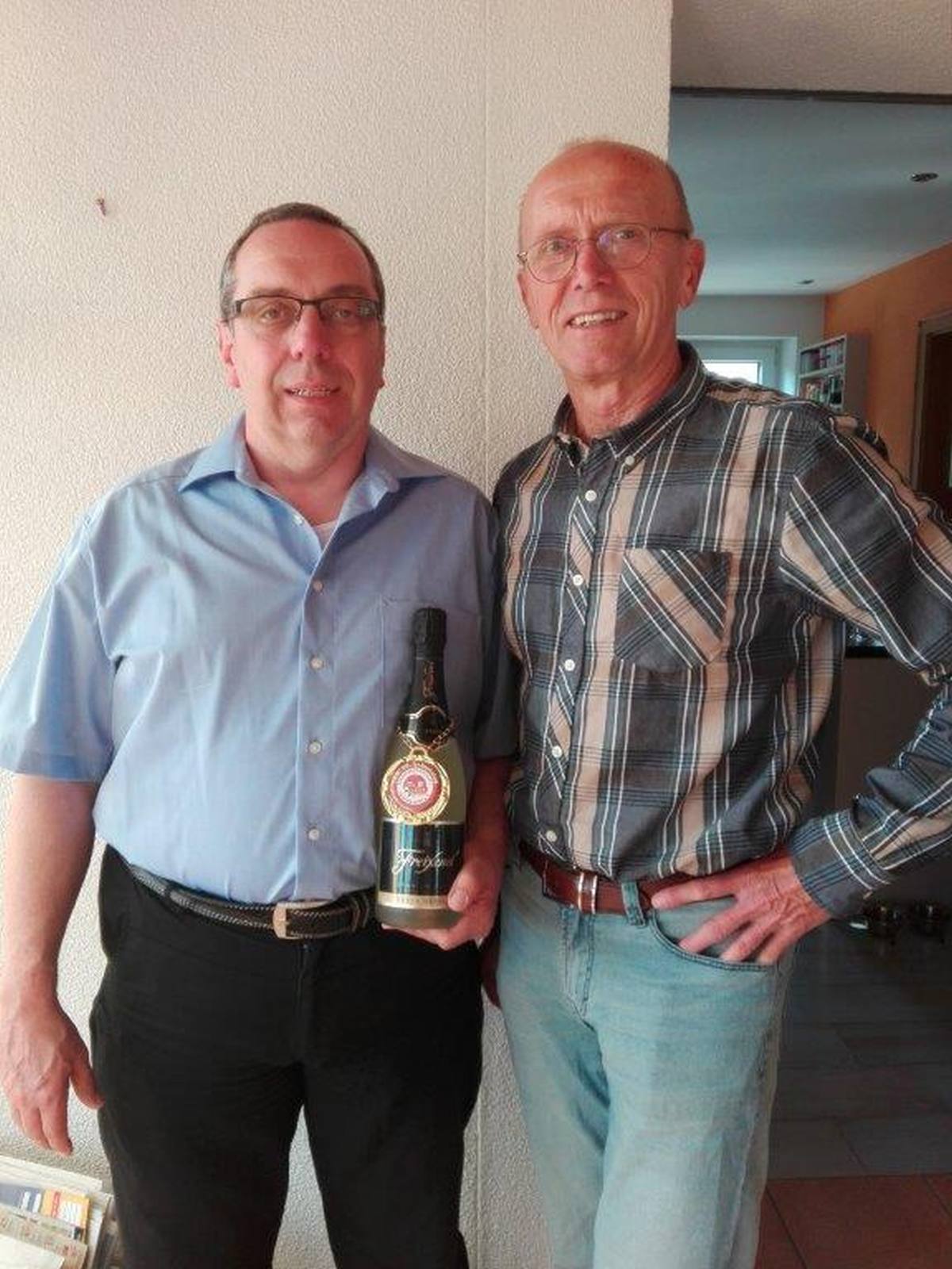 Bereits am Vatertag konnte Stefan Baier seinen 60. Geburtstag feiern. Jetzt fand auch Vorstand Michael Rauch Gelegenheit, dem Jubilar zu gratulieren und das Geburtstagspräsent zu überreichen.