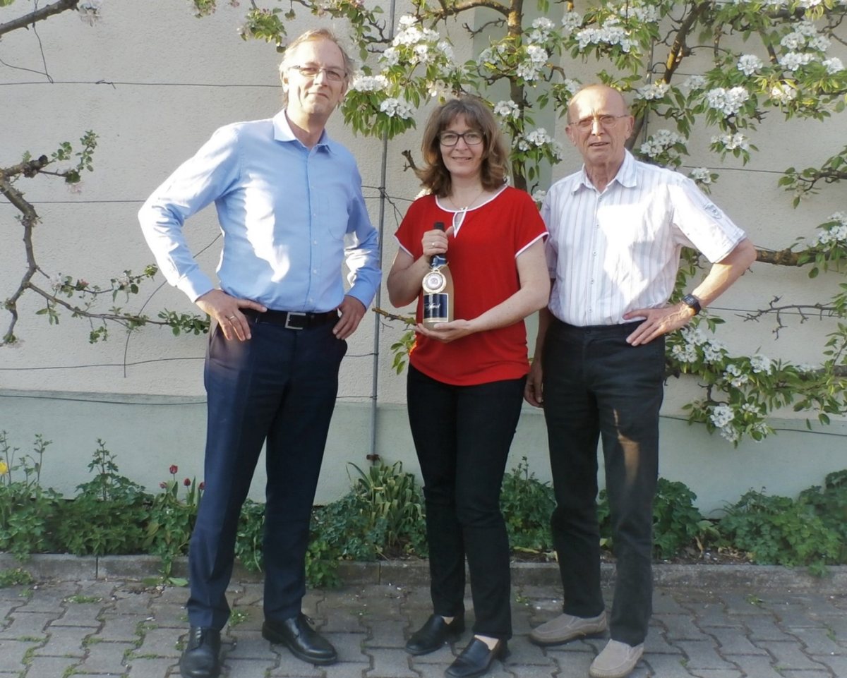 Das Geburtstagskind und die Sonne strahlten um die Wette als die Vorstände Michael Rauch und Jürgen Krüger mit dem Vereinpräsent zu Ingrid Haucke nach Oberroth gekommen waren.