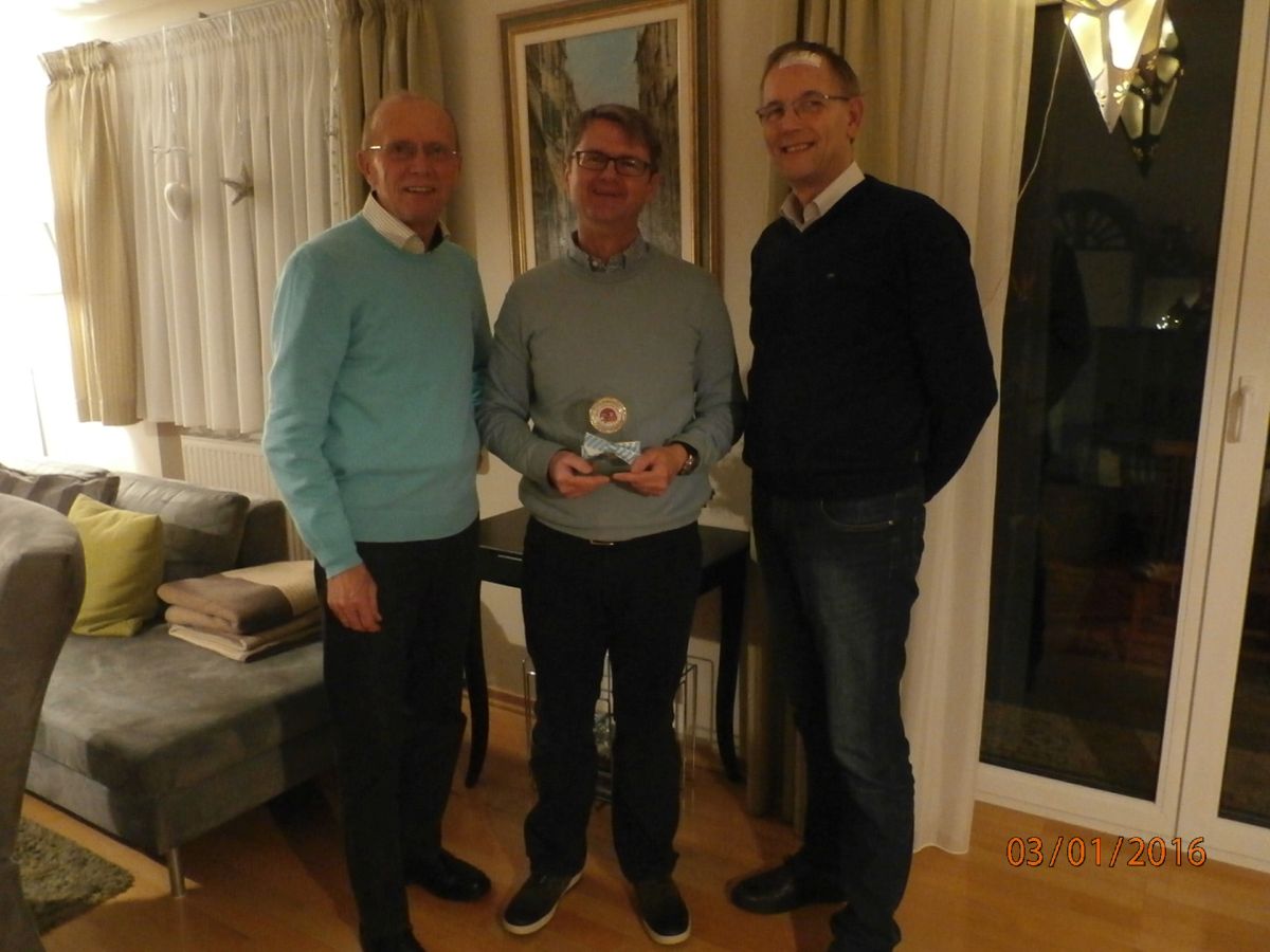 Nachdem Norbert Pitschi seinen 50gsten im sonnigen Lissabon gefeiert hatte, konnten ihm die Vorstände Michael Rauch und Jürgen Krüger die Glückwünsche der SG Indersdorf und den "Geburtstagspokal" erst jetzt überbringen.