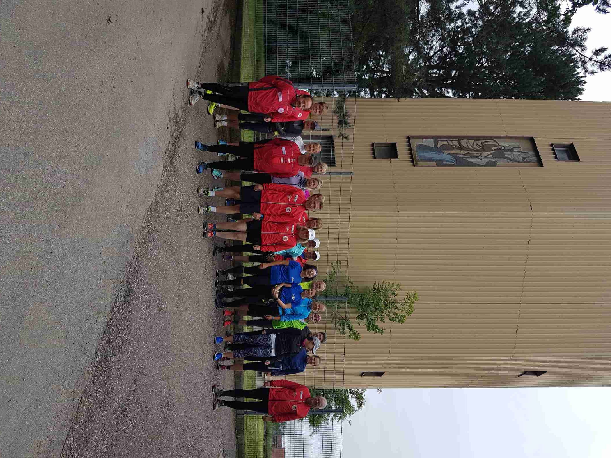 Noch bevor sich die beiden unterschiedlich schnell laufenden Gruppen trennten, wurde ein Foto vor dem Wasserturm gemacht.