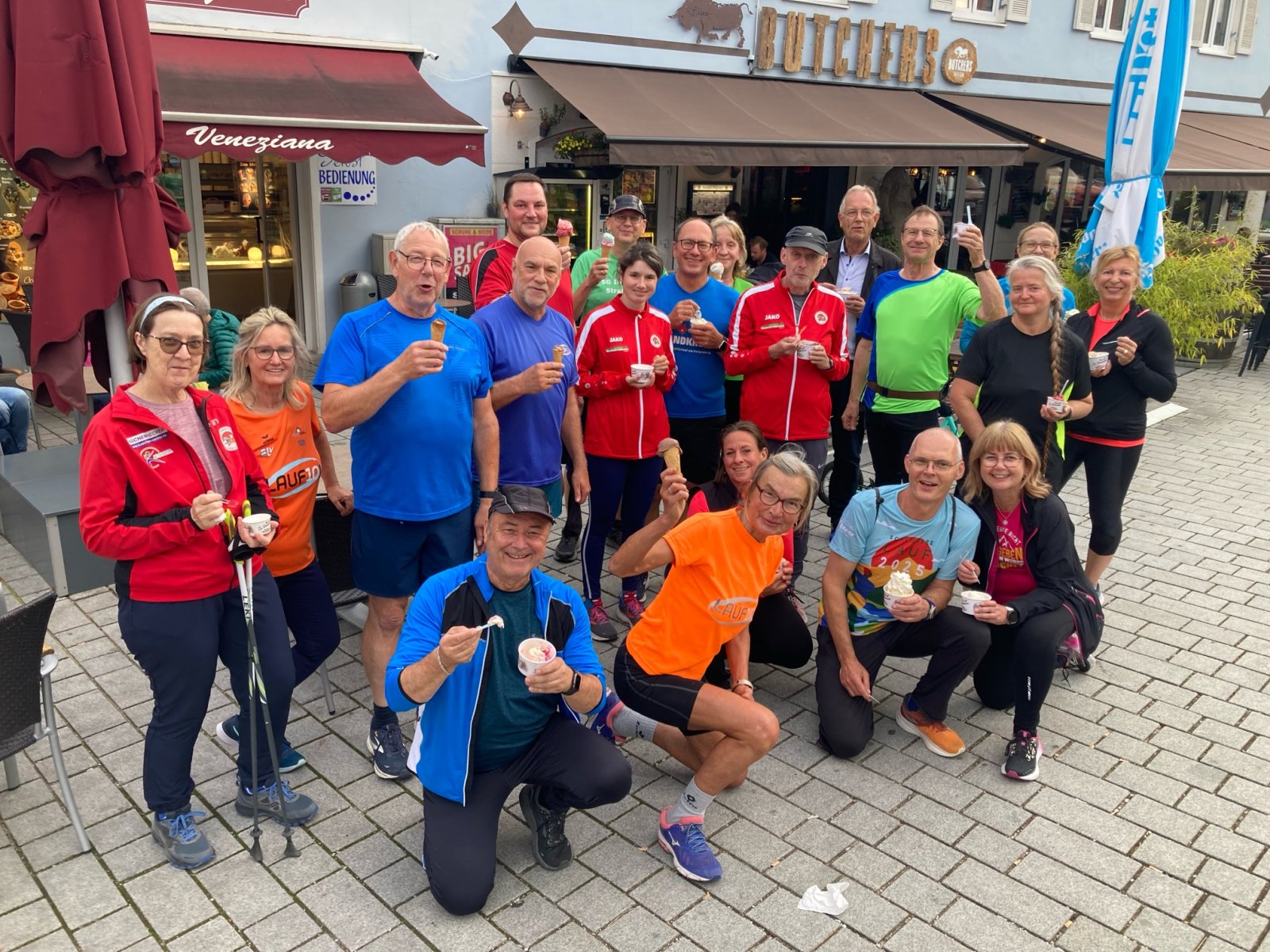 Wer sich elf Wochen lang, dreimal die Woche, jeweils mindestens zwei Stunden lang geplagt hat, der hat sich zur Belohnung auch ein Eis verdient. Dieses spendierte Trainer und Leiter der Lauf10-Wochen Ortwin, gratulierte zum Durchhaltevermögen und wünschte allen Teilnehmern für den Abschlusslauf in Wolnzach viel Erfolg und alles Gute. Er selbst konnte heuer leider nicht teilnehmen.