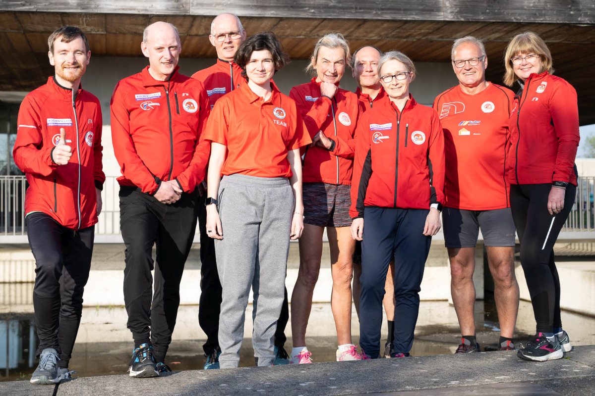Martin, Markus, Ortwin, Angela, Berta, Manfred, Andrea, Martin und Karin (auf dem Bild von links nach rechts) durften am ersten Trainingstag ca. 60 Teilnehmer herzlich begrüßen. Von nun an treffen wir uns regelmäßig zu den genannten Trainingszeiten am Parkplatz des Gymnasium Markt Indersdorf.