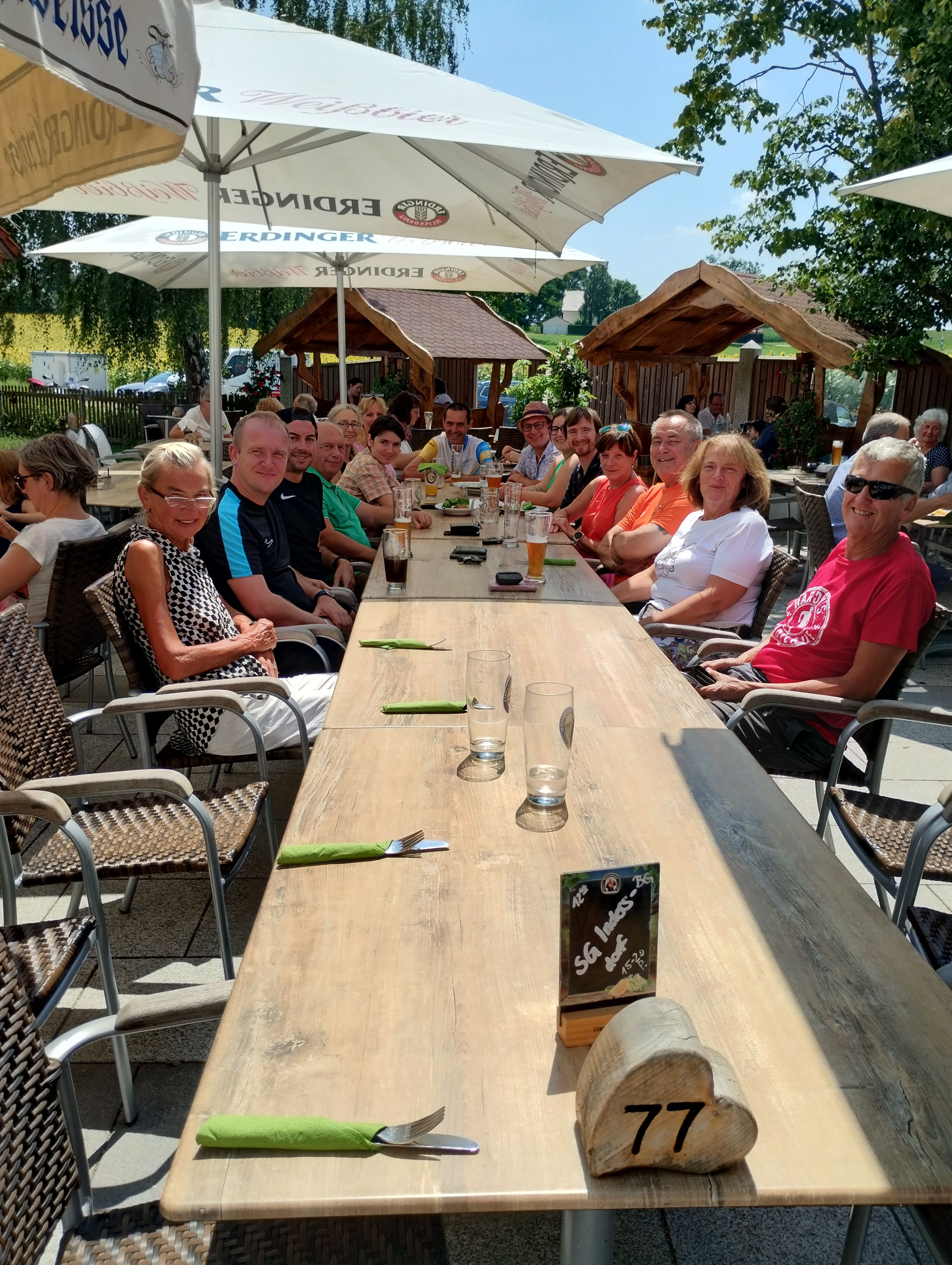 Zu dieser Veranstaltung nahmen ca. 15 Personen teil und tauschten sich über die ereignisreichen Wochen im Biergarten bei sonnigem Wetter aus.