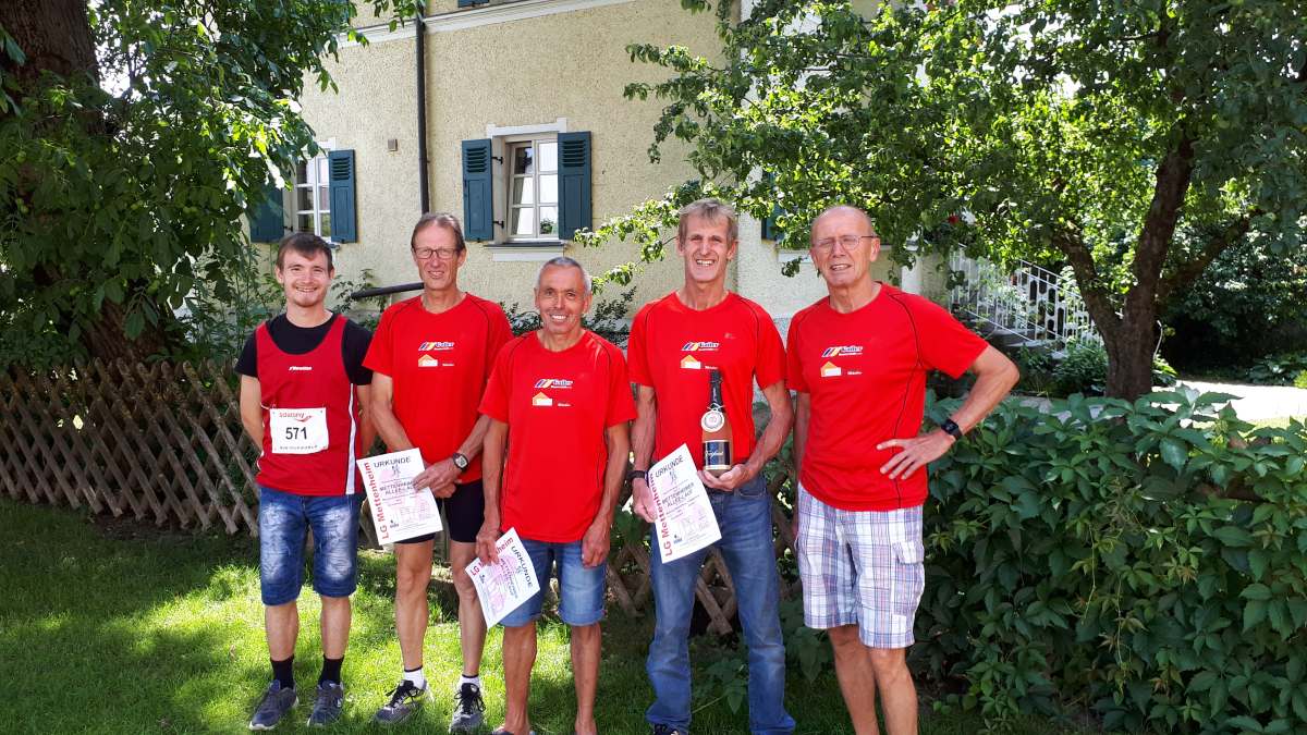 Bei hochsommerlichen Temperaturen und drückender Schwüle waren unsere Altstars bei den Bayerischen Meisterschaften im Straßenlauf über 10 km in Mettenheim bei Mühldorf/Inn an den Start gegangen. Um 10.30 Uhr wurde das über 200 Teilnehmer starke Läuferfeld auf die 2 Runden in Mettenheim geschickt. Angeführt von Jakob Furtmayr folgte Gerhard Seitz und Peter Fritsch. Der ebenfalls gestartete Vereinschef Michael Rauch beendete das Rennen vorzeitig bereits nach 3 km. Die anderen Indersdorfer kämpften sich Platz um Platz nach vorne und konnten sogar die gefürchtete Konkurrenz aus Ruhstorf hinter sich lassen. Nach 40.28 min. legte Jakob Furtmayr den Grundstein für die Silbermedaille. Gefolgt von Gerhard Seitz, der 42.44 min. benötigte und von Geburtstagskind Peter Fritsch, der nach 45.30 min im Ziel war.