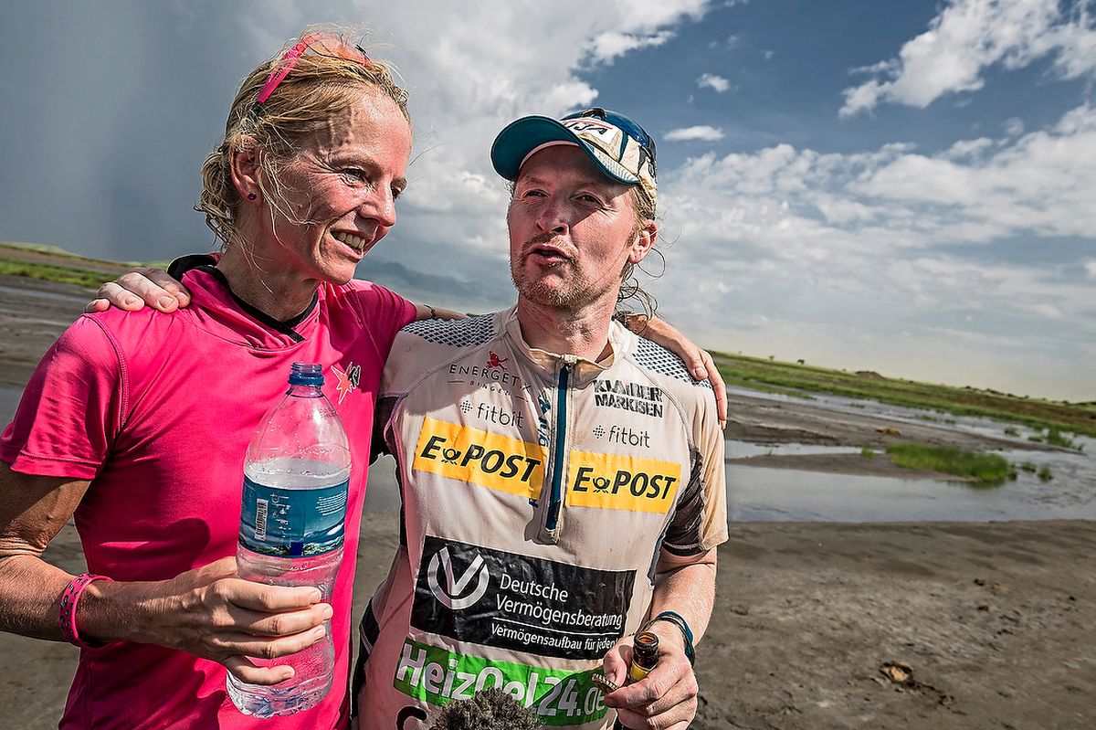 Auch die beiden letzten Etappen forderten noch einen extremen Willen und eine enorme Anstrengung. Die Krönung brachte der letzte Tag als neben der Bewältigung der Distanz zu allem Überfluß auch noch eine "Sonderprüfung" zu absolvieren war. Diese bestand darin, dass die beiden verbliebenen Starter einen Autoreifen über eine Strecke von 10 km auf einer Schotterpiste hinter sich heziehen mussten. Da nur Joey Kelly wusste wie weit es noch bis ins Ziel ist, konnte er auch das Tempo des Schlussspurtes so wählen, dass natürlich er als Sieger über die Ziellinie ging. Aber bereits 10 Min. später konnte er eine überglückliche Ulrike Mayer-Tancic in seine Arme schließen. Völlig erschöpft, aber überglücklich, diese Wahnsinnsanstrengung bewältigt zu haben, freute sich Ulrike Mayer-Tancic auf ihre Rückkehr in die Zivilisation.