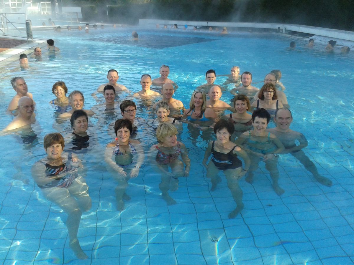 Nach einem Jahr Pause rief Organisator und Vereinsvorstand Michael Rauch wieder zu einer Badefahrt nach Bad Füssing und Bad Griesbach auf. Zahlreiche Mitglieder und Freunde des Vereins folgten dem Aufruf zur Kurzerholung und Regeneration. Am Samstag ging es morgens um 8.30 Uhr los. Gegen 11 Uhr im niederbayerischen Bäderdreieck angekommen, schnürten einige SG´ler erst mal die Laufschuhe und erforschten die Gegend auf Veränderungen. Danach wurde ausgiebig in der Europatherme erholt. Zum Abendessen traf man sich im Gasthaus Waldeck. Nach üppigen Mahl und gewonnener Schlacht am Nachspeisenbuffet ging es in die Hausbar vom Hotel Mayerhof. Dort gestaltete Sabine König einen gelungenen Liederabend.
