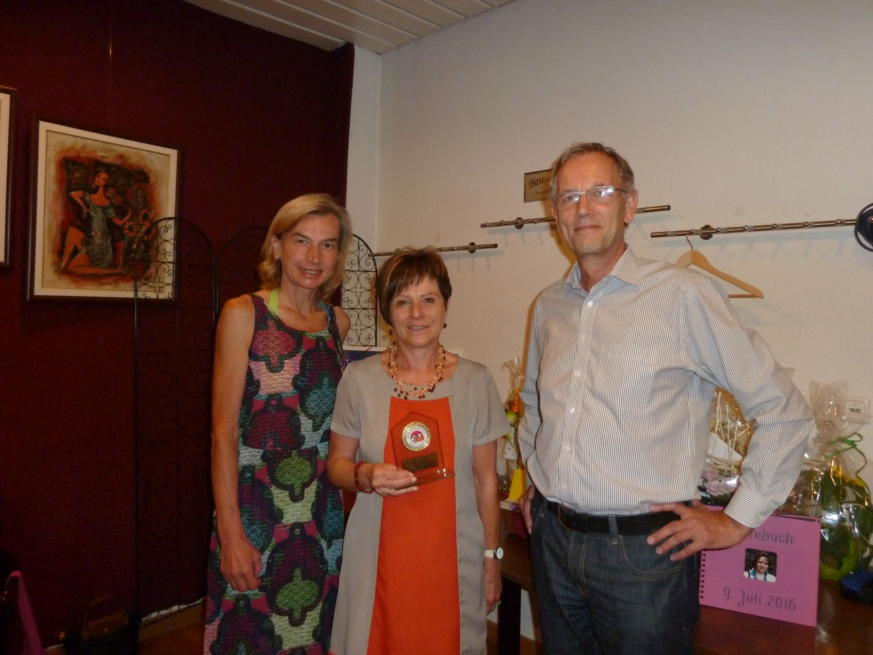 Das offizielle Geschenk mit den Glückwünschen der SG Indersdorf zum 60.Geburtstag überreichten Jürgen Krüger und Berta Schiller im Rahmen der sommerlichen Geburtstagsfeier im Gasthaus Birnbaum in Ebersbach. Für die Vorstände ist sehr schön zu sehen, wie sich die Freundeskreise im Umfeld der Aktivitäten unseres Laufvereins bilden.