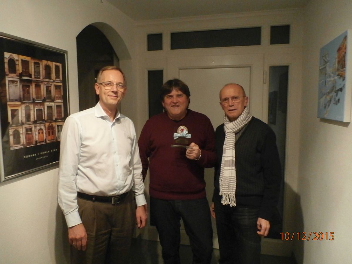 Nachdem Martin Betz seinen 60igsten in Achenkirch gefeiert hatte, konnten ihm die Vorstände Michael Rauch und Jürgen Krüger die Glückwünsche der SG Indersdorf und den "Geburtstagspokal" erst mit Verspätung überbringen.