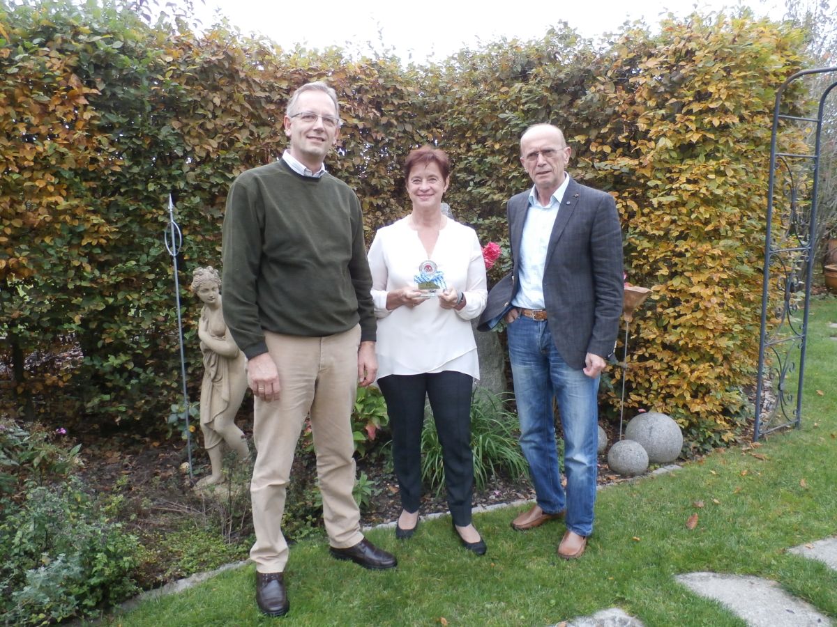 Zum 60igsten Geburtstag von Irmgard Stiegelbauer gratulierten Vorstand Michael Rauch und 2. Vorstand Jürgen Krüger. Natürlich brachten sie auch die Glückwünsche der SG Indersdorf und den obligatorischen "Geburtstagspokal" mit.