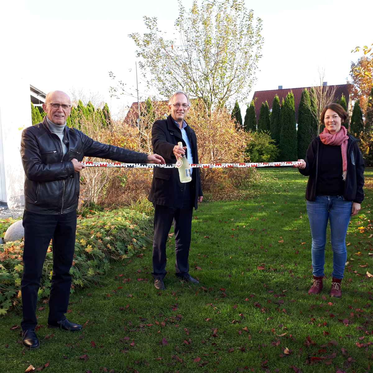 Unter strenger Beachtung des Mindestabstandes gratulierten Michael Rauch und Jürgen Krüger Anke Hörner zum runden Geburtstag.