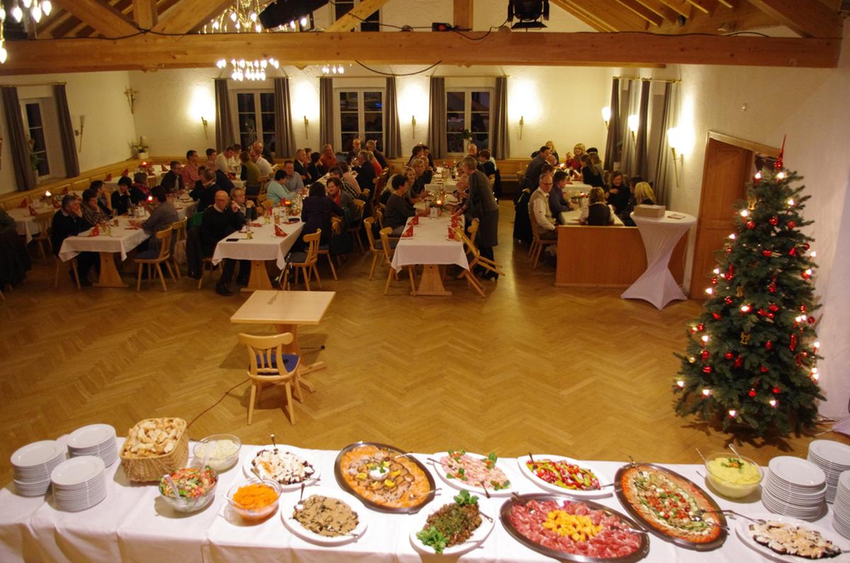 Zunächst wurden die Gäste im Dollsaal von der SG-Musik unter der bewährten Leitung von Franz Neumüller mit besinnlichen Weisen und einigen amüsanten Geschichten, die von Heinzi Tschuchnig, Manfred Schneider und Berta Schiller vorgetragen wurden, auf das bevorstehende Weihnachtsfest eingestimmt. Den Höhepunkt des Abends läutete dann Hans Doll mit der Eröffnung des umfangreichen Speisenbuffettes ein. Die kurze Pause bis zum Nachspeisenbuffett nützte SG Vorstand Michael Rauch, um die nächsten Aktivitäten bekannt zu geben, bei denen der anstehende Crosslauf am Golfpark Gut Häusern die erste größere Aufgabe für die vielen Helfer in der SG sein wird.