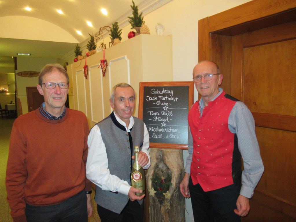 Anbläßlich der Einladung zu seinem 60 Geburtstag konnten Michael Rauch und Gerhard Seitz dem Jubilar Jakob Furtmayr auch die Glückwünsche der SG Indersdorf übermitteln.