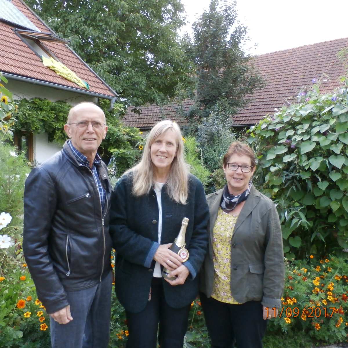 Siegrid und Michael Rauch besuchten die Jubilarin Roswitha Becker zu Ihrem 60 sten Geburtstag und brachten auch die Glückwünsche der SG Indersdorf und das Geburtstagspräsent mit.