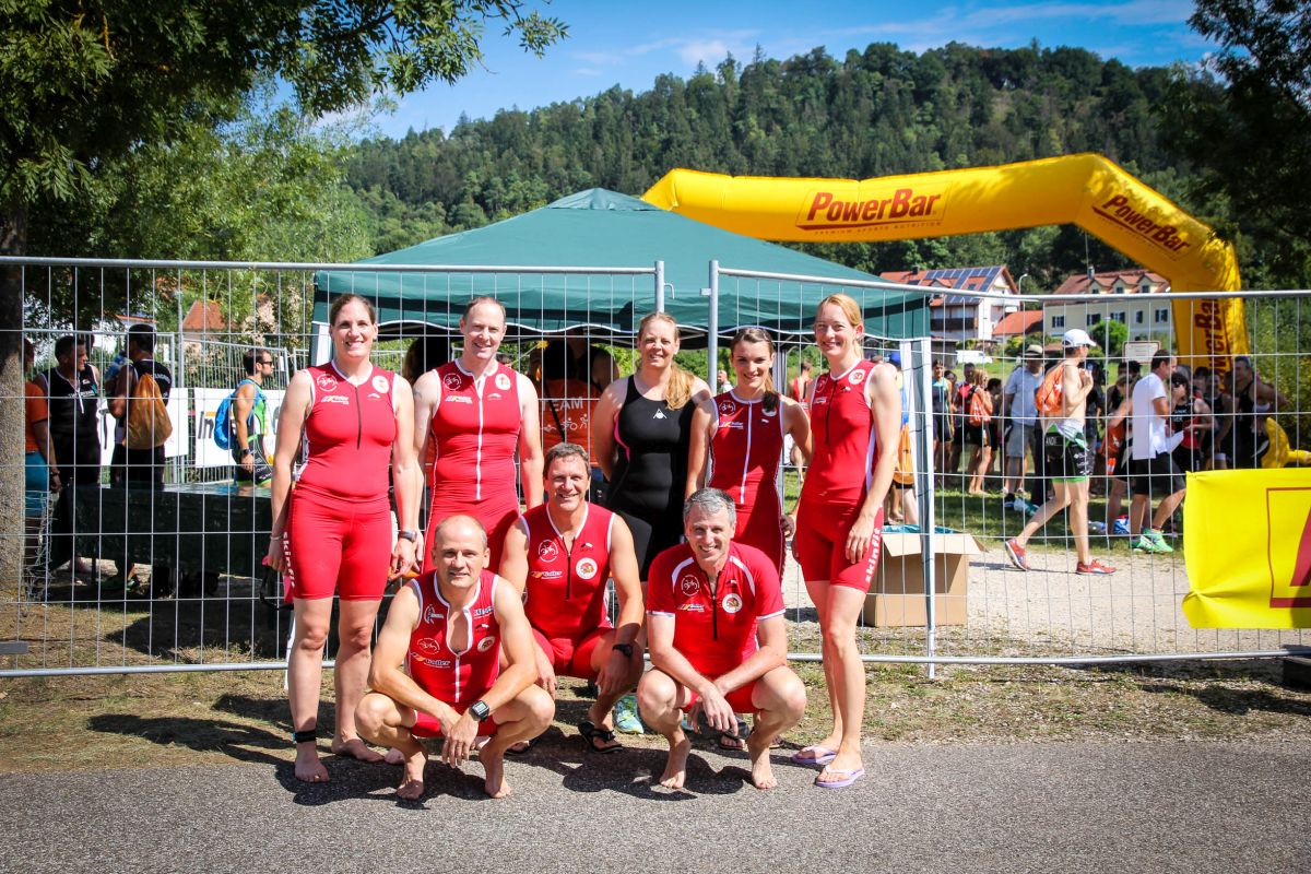 Bei durchaus sehr warmen Temperaturen war das anfängliche Schwimmen im RMD Kanal zwar erfrischend, aber ob der Kürze der Strecke von 300m schnell vorbei. Mit Volldampf auf der Radstrecke von 8 km unterwegs kamen einige von uns bereits nach einigen Kilometern an die Laktatgrenze. Gegenwind und ein stetig leicht ansteigendes Gelände forderten den Radlern alles ab. Der Lauf über 2,5 km entlang der Sulz ins Stadtzentrum und zurück zum Schwimmstart forderte von den Teams die letzten Körner. "Gott sei Dank" dachte sich wohl jeder, ob Spitzenathlet von der TV Erlangen (1.Bay. Meister) oder unsereiner Freizeitathleten, alle sahen trotz der kurzen Distanzen nämlich ziemlich erschöpft aus. Bleibt eigentlich nur noch die Leistung unserer beiden Rookies zu erwähnen. Steffi und Ursula haben Ihren ersten Triathlon absolviert! UND das mit allergrößtem Einsatz. Mädels, es ist nicht immer so anstrengend!