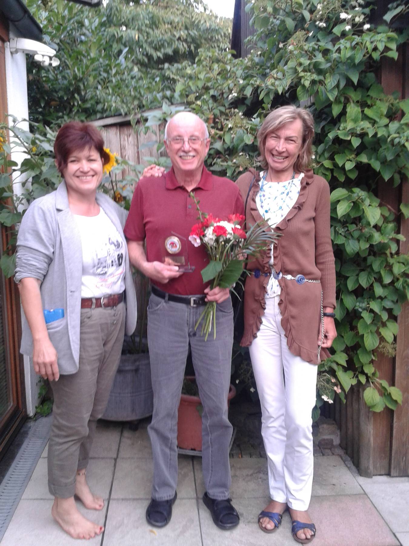 Da war auch der Damenbesuch von der SG Indersdorf herzlich willkommen. Berta Schiller in Begleitung von Margit Grau-Weller und Tatjana Adolff übergaben das offizielle Geschenk der SG Indersdorf. Auch wenn unser Jubilar - Vereinsmitglied bereits seit der Gründung der Abteilung Leichathletik im TSV Indersdorf im Oktober 1998 - vor mindestens 10 Jahren verletzungsbedingt seine aktive Laufkarriere beenden mußte, ist er dennoch mit unermüdlichem Einsatz bei allen unseren Veranstaltungen als verläßlicher Helfer dabei.