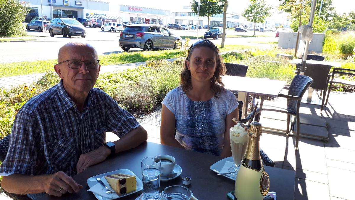 Das schöne Wetter und den guten Kuchen nützten Jana Miller und Michael Rauch zu einem Plauderstündchen und zur Übergabe des Vereinspräsents
