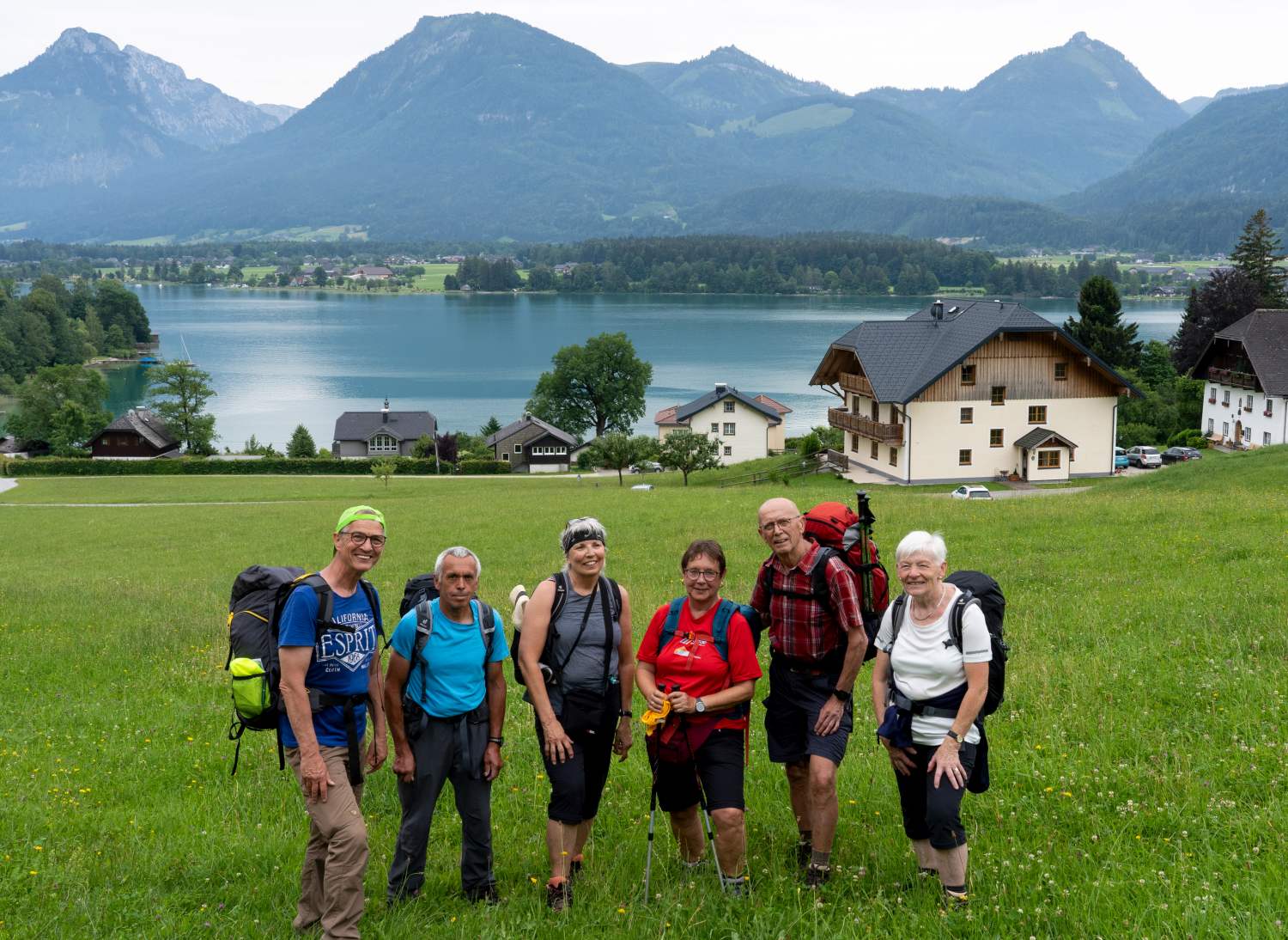 Die diesjährige Wanderwoche von einigen SG ler/innen führte die Gruppe zum Start an den Fuschlsee. Von dort wurde bei der 1. Etappe das Zwölferhorn erklommen und dann nach St. Gilgen am Wolfgangsee abgestiegen. Die 2. Etappe führte nach einer kurzen Schifffahrt von Fürberg über den Falkenstein auf den wohl markantesten Gipfel am Wolfgangsee, den 1783 mtr. hohen Schafberg. In dieser luftigen Höhe war auch die Übernachtung im Hotel Schafbergspitze geplant. Nachdem am nächsten Morgen das Tal wieder erreicht war, ging es weiter Richtung Mondsee. Nach einem stärkenden Abendessen waren alle wieder fit genug, um noch einen Abendspaziergang durch die Fußgängerzone und zur imposanten Michaelskirche zu unternehmen. Die letzte Etappe führte vom Mondsee über die Ruine Wartenfels wieder zurück zum Startort, an den Fuschlsee. Ein Teil der Gruppe trat dann die Heimreise an, der Rest gönnte sich noch einen Tag im bekannten Kurort Bad Ischl. Eine Woche bei schönstem Wanderwetter wird sicher lange in Erinnerung bleiben.