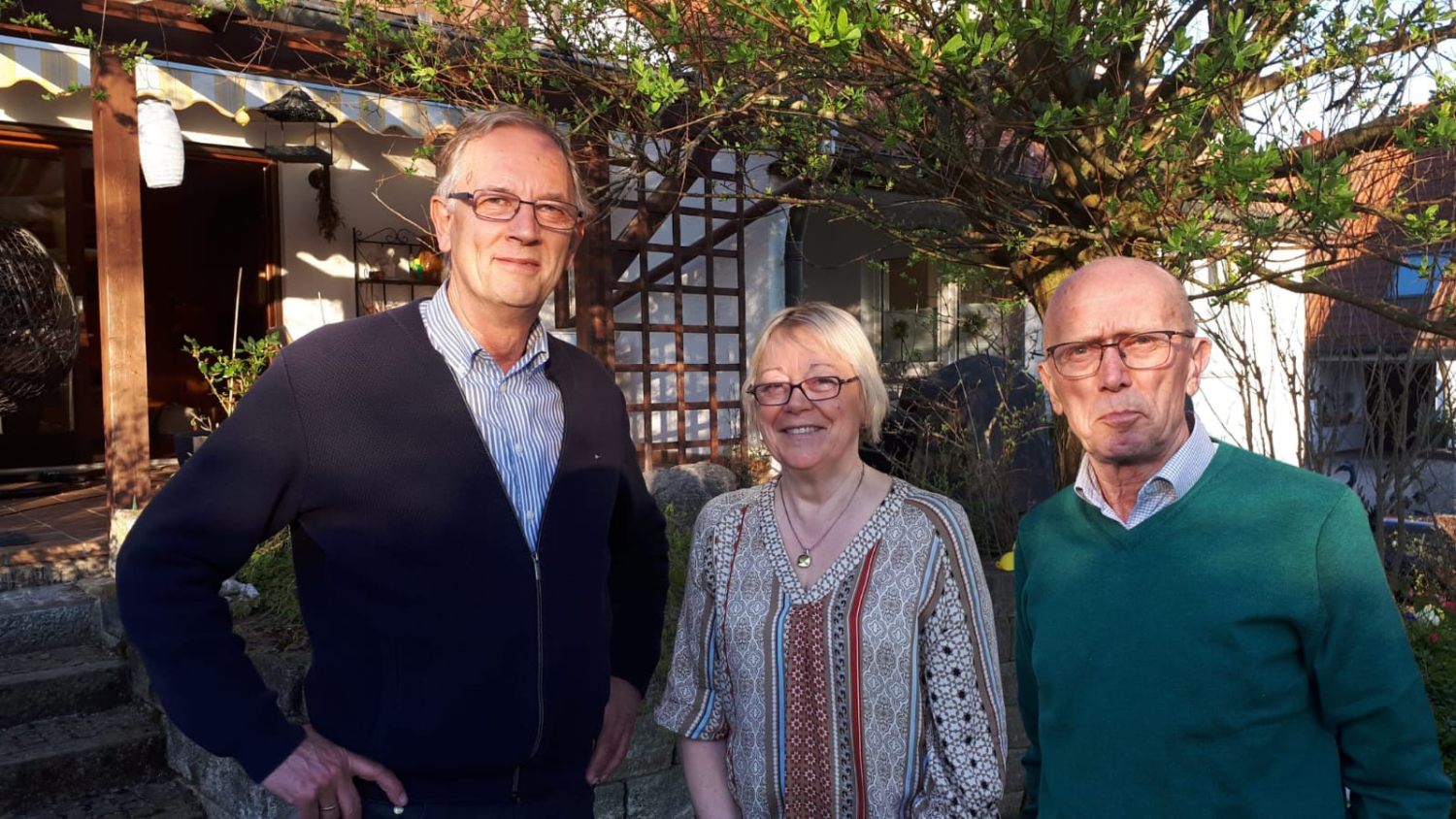 Der Osterspaziergang führte die Vorstände Michael Rauch und Jürgen Krüger in den sonnigen Garten von Maria Gattinger, um der Jubilarin zum runden Geburtstag zu gratulieren.