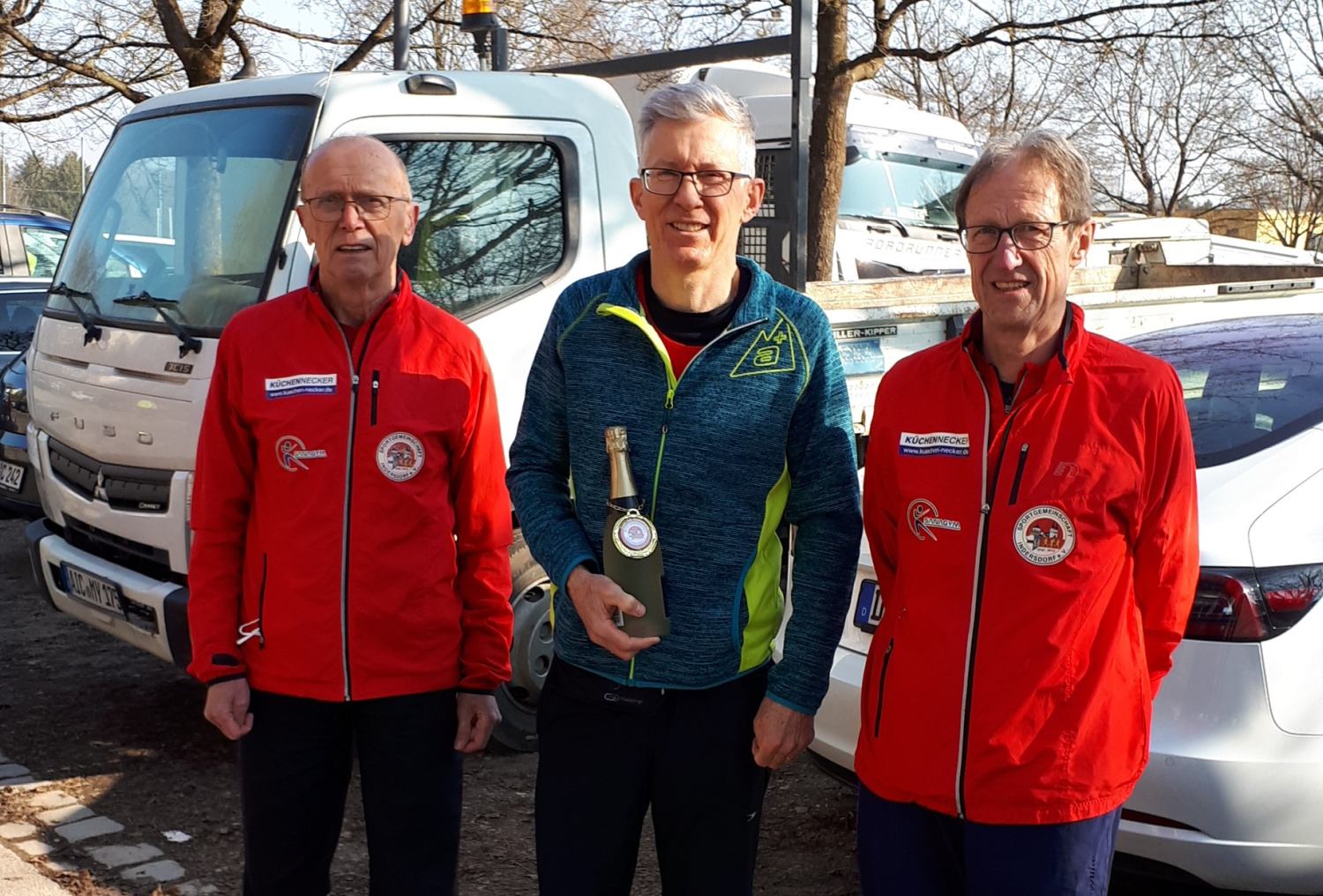 Herzlich willkommen in der AK M 60 hieß es für Konrad Wallner. Michael Rauch und Gerhard Seitz gratulierten dem Jubilar.