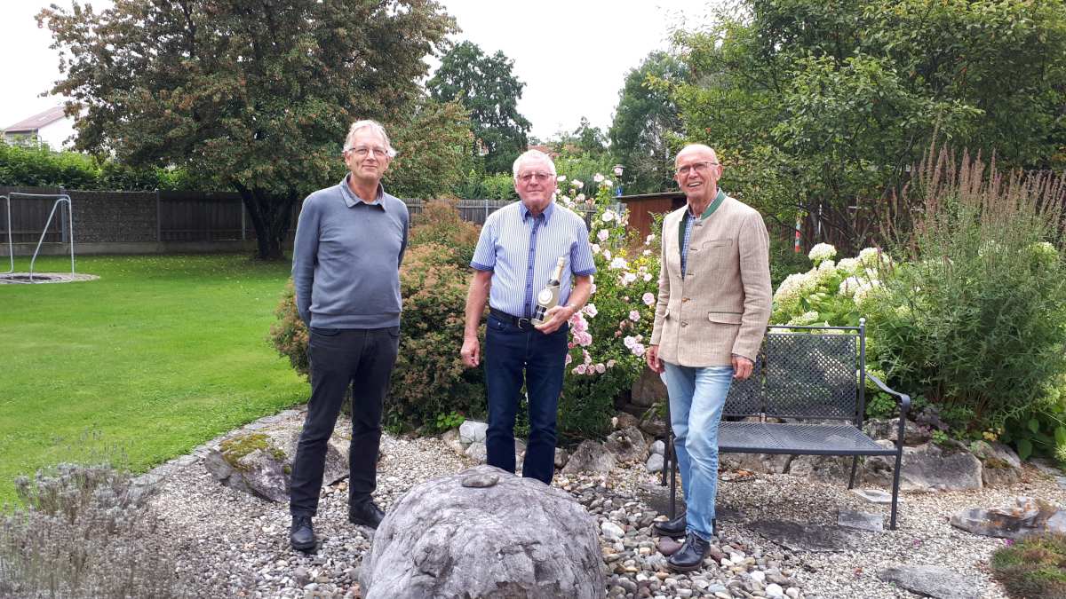 Die Vorstände Michael Rauch und Jürgen Krüger gratulierten im Namen der SG Indersdorf und wünschten beste Gesundheit für das ehrgeizige Ziel.