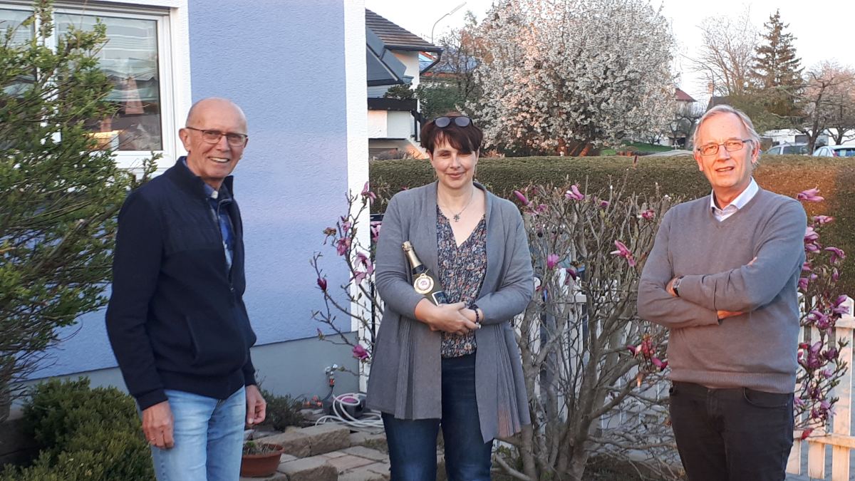 Zum runden Geburtstag gratulierten die Vorstände Michael Rauch und Jürgen Krüger der Jubilarin Andrea Schermaul. Zurück Weiter