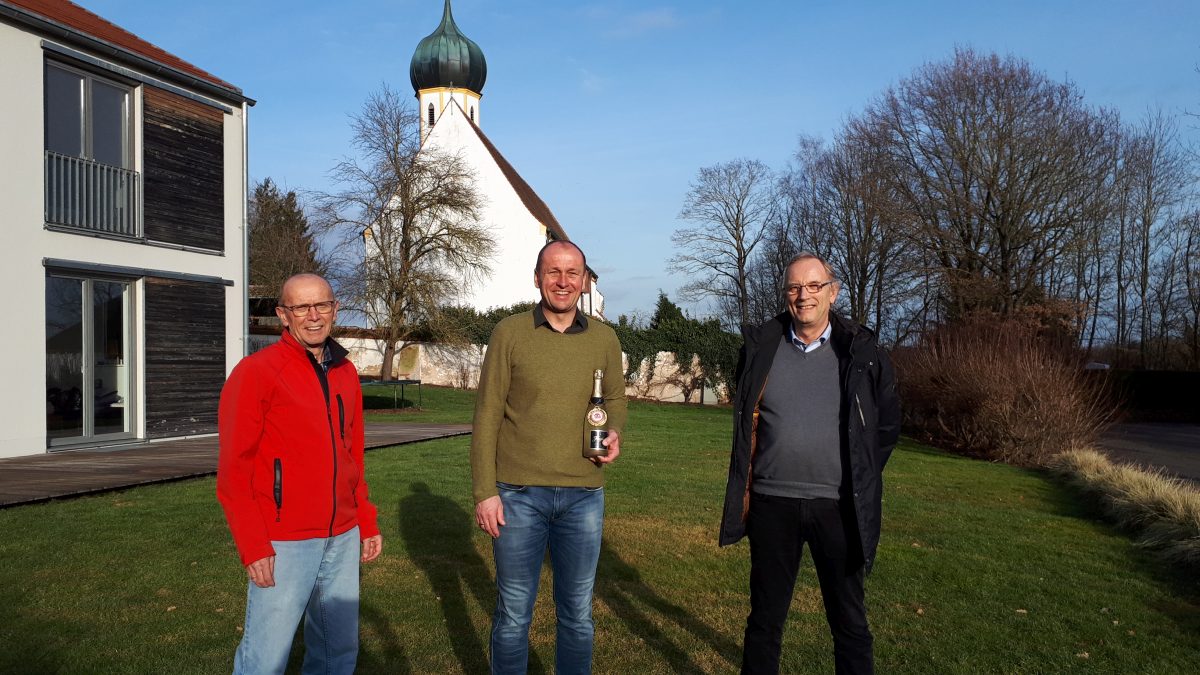 So konnte sich Josef Kaspar über die Glückwünsche zu seinem 50sten Geburtstag freuen, die Jürgen Krüger und Michael Rauch von der SG Indersdorf gerne überbrachten.
