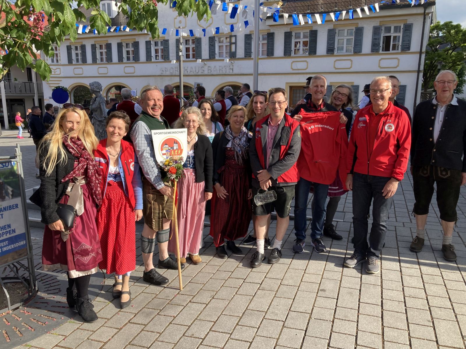 Unser erster Vorstand Martin Böller und unsere Vereinskameradin Angela Nave haben sich am Freitag, den 23. Mai 2025 in der Indersdorfer Marktkirche das Ja-Wort gegeben. Zu dieses Ereignis begleiteten sie nach der Trauung einige SG´ler mit einem Spalier vorm Kirchenportal zum Brautauto. Nachdem alle dem Brautpaar gratuliert hatten und es sich verabschiedete, ließen wir es noch mit einem Glas Sekt hochleben und stießen auf das schöne Ereignis an. Damit stimmten wir uns auch gleich auf die nächste Aktion ein, denn viele der Spaliersteher trafen sich bereits ein paar Stunden später wieder auf dem Indersdorfer Marktplatz zusammen für den Volksfesteinzug der Vereine.