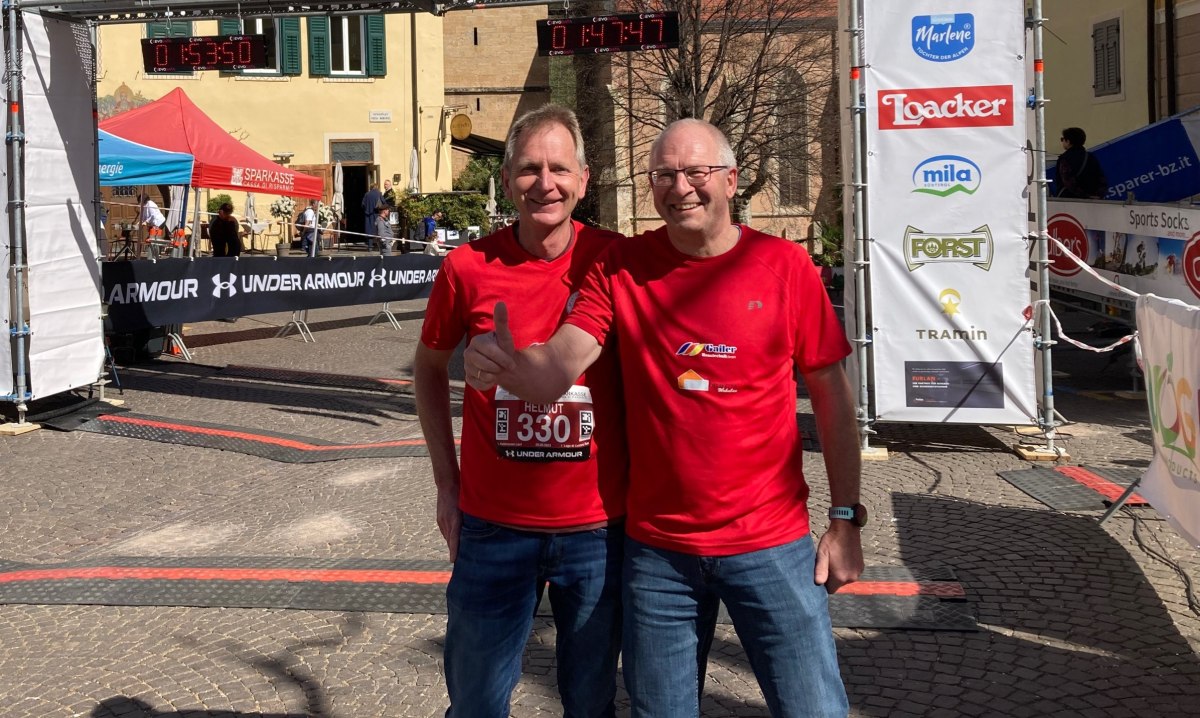 Von Tramin, der Heimat des Gewürztraminers, ausgehend zum wärmsten Badeseee der Alpen ging es zunächst nach Norden, wo wenig später die Kalterer-See-Runde im Uhrzeigersinn gelaufen wurde, also in umgekehrter Richtung im Vergleich zu den vergangenen Jahren. Zum Ziel ging es dann wieder zurück nach Tramin auf den Rathausplatz. Insgesamt ist die Strecke damit 14,8 Kilometer lang. Von der SG Indersdorf haben an diesen neuen Laufformat Hans Bramberger (1:17:12 min) und Helmut Bayer (1:17:49 min) teilgenommen.