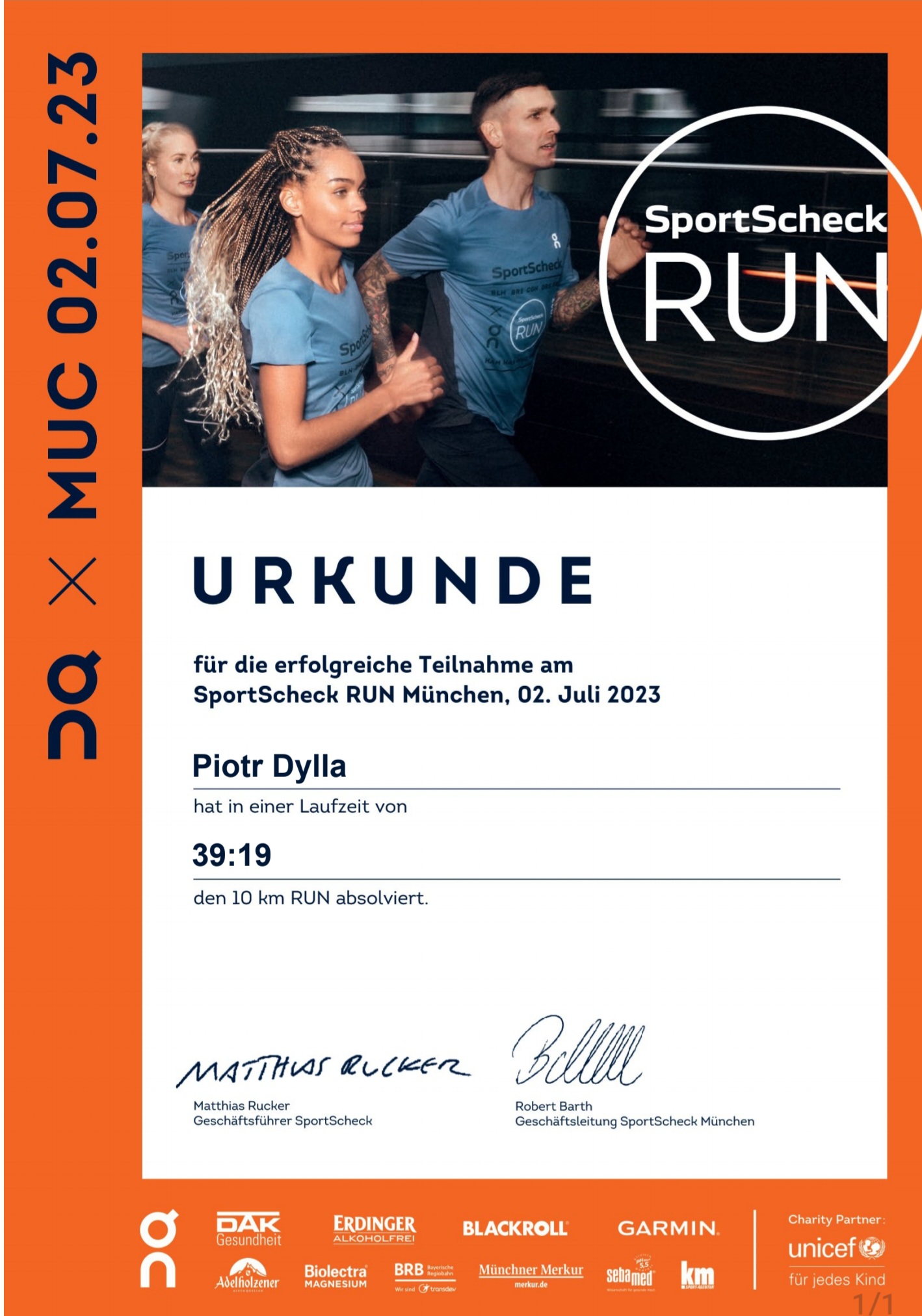 Am Sonntag nahm unser Vereinskamerad Piotr Dylla an dem renommierten Sport Scheck München Lauf über 10 Kilometer teil. Dabei erreichte er einen hervorragenden fünften Platz in der Altersklasse M40-45 und war 66. von insgesamt 3446 Läufern. Einige Pfützen vom Regen in der Nacht sowie leicht matschige Wege im Englischen Garten trübten die ansonsten aber guten Laufbedingungen nicht. Dies war aber nicht der einzige Lauf, den er an diesem Wochende absolvierte, den tags zuvor startete er bereits beim bei dem 5 km Lauf beim Parklauf in Riem und belegte dort einen tollen dritten Platz. All diese Läufe und ein äusserst intensives Training sollen ihn für den Gletschertrail in Österreich fit machen.