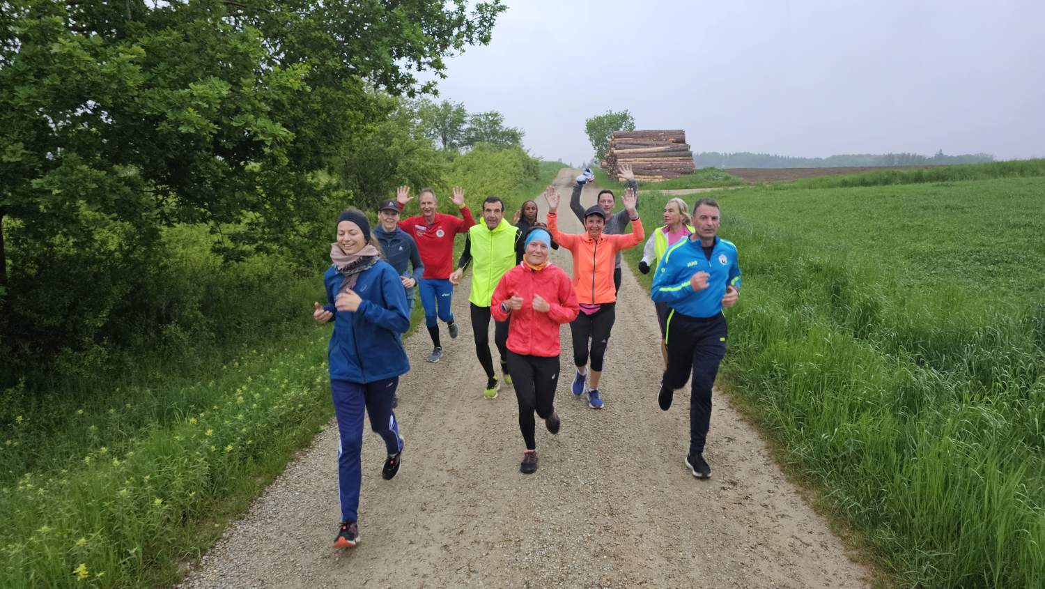 11 SportlerInnen starteten am Abend vor Vatertag in die Weichser Hügel. Mit unserem Tourguide Ferdl drehten wir eine anspruchsvolle Landschaftsrunde incl kurzem Dehnen am Aussichtsbankerl. Erst nach der zweiten Begegnung mit einem Maiandacht-Bittgang schon wieder auf dem Fußweg von Ebersbach nach Weichs hörten wir die ersten Autos. Schaut Euch die wunderschönen Bilder von unserem Ferdl an, und freut Euch auf die nächsten Frühlingsrunden. Gemeinsam ist das zu schaffen, und den 20.07. Altmühlsee - HM sollte schon mal jeder im Terminkalender überprüfen.