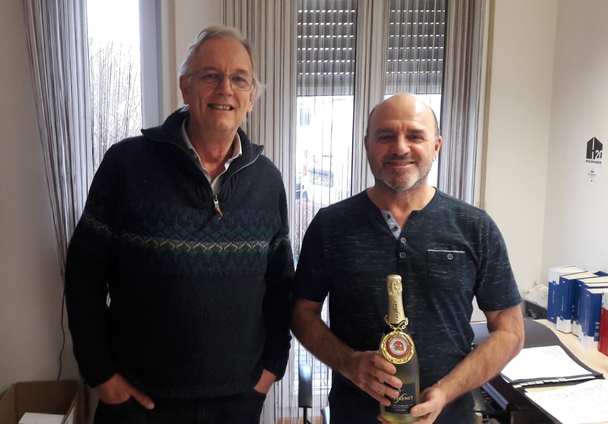 Jürgen Krüger besuchte unseren langjährigen Sponsor und Jubilar Hans Gailer und überreichte ihm im Namen der SG Indersdorf das Vereinspräsent.