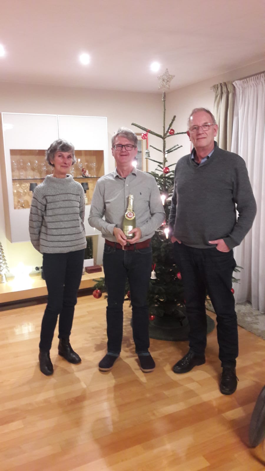 Die Glückwünsche des Vereins sowie das Vereinspräsent überreichten anlässlich des letzten runden Geburtstags im Jahr 2025 der Vereinsvorsitzende Jürgen Krüger gemeinsam mit seiner Frau Bärbel dem Jubilar Norbert Pitschi.