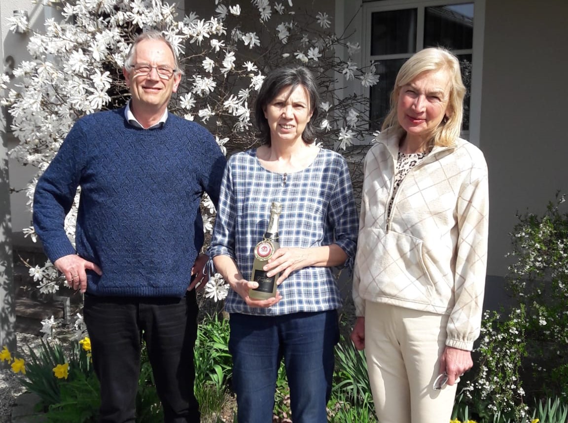 Zehn Tage nach dem 60.Geburtstag ihres Ehemannes Johann feierte Gertraud Glas nun ebenfalls Ihr rundes Jubiläum. Zweiter Vorstand Jürgen Krüger und Berta Schiller überreichten dem Geburtstagkind das Vereinspräsent.