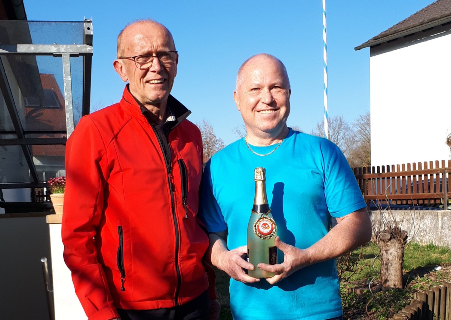 Bei bestem Gartenpartywetter konnte Manfred Berger mit Freunden und Familie seinen runden Geburtstag feiern. SG Vorstand Michael Rauch gratulierte und hatte auch das Vereinspräsent dabei.