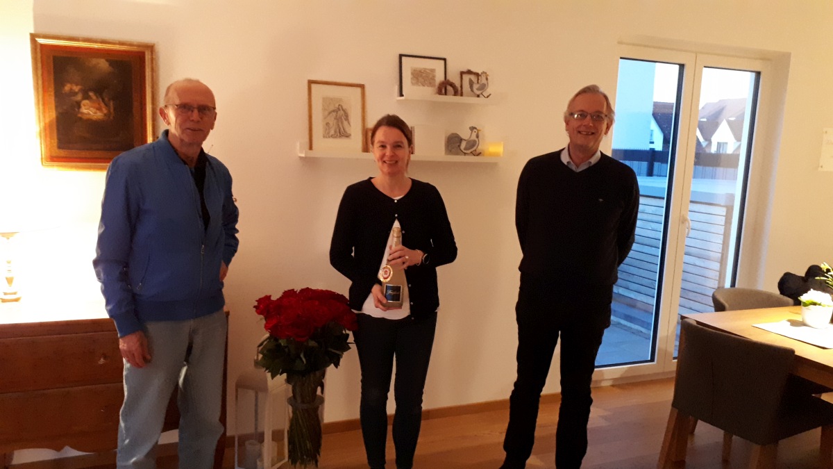 Die Vorstände Michael Rauch und Jürgen Krüger gratulierten im Namen der SG Indersdorf, Arabella Egg zum runden Geburtstag. Zurück Weiter
