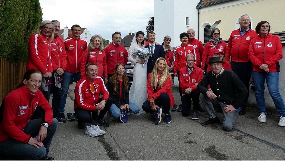 Anlässlich seiner Hochzeit mit Angela überbrachten die Familie Krüger, Seitz und Ziehm die allerherzlichsten Glückwünsche des Vereins und überreichten das Vereinspräsent im Rahmen der Feierlichkeiten bei Wirt z´Riad. Auch hatten die genannten Familien die Ehre, das Brautpaar bei der kirchlichen Trauung und der anschließenden Feier bis in die späten Abendstunden auf einer deutsch-amerikanischen Hochzeit zu begleiten.